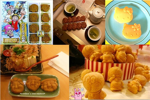 人形燒(にんぎょうやき),香港及澳門地區稱之為公仔餅,是日本東京淺草寺(せんそうじ)的特產,因其發源于中央區日本橋人形町而得名。與雷門、五重塔合稱為淺草寺“三大名物”。它以面粉(こむぎこ)、雞蛋(たまご)、砂糖(さとう)為原料,混合后在里面裹入紅豆餡兒(あんこ),放在專門的模具中烘烤而成的點心。造型主要模仿七福神和淺草雷門,當然也有各種人物跟小動物造型,還可以看到不少漫畫里的主角們,從櫻桃小丸子多啦A夢到路飛柯南,令人眼花繚亂。