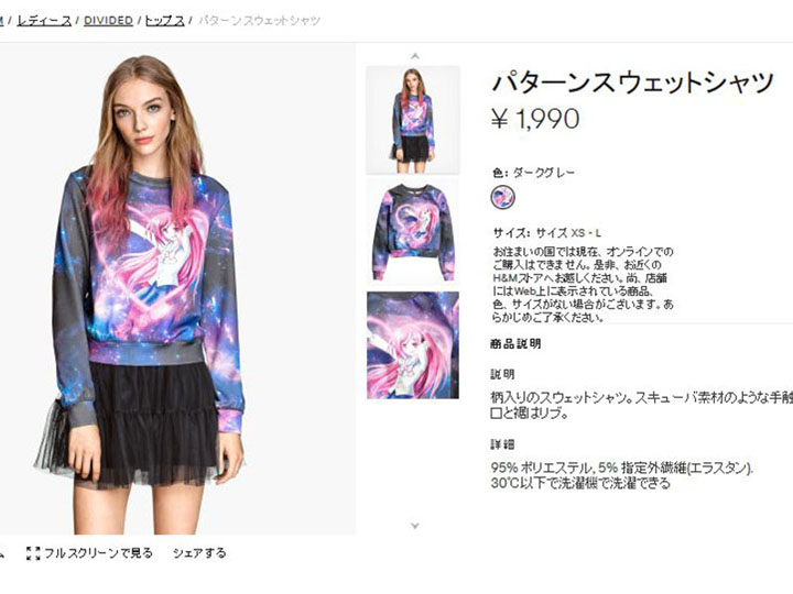 自選式時尚品牌H&M在日本年輕女性中頗有人氣。而該品牌在今年春天的新款女裝中大膽加入了許多二次元及日本元素,引人矚目。