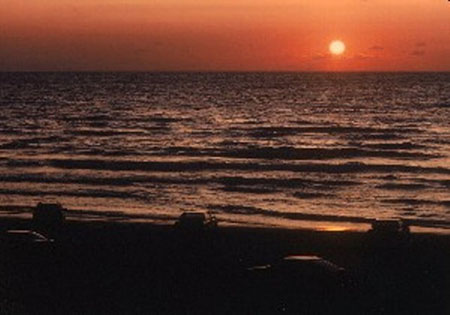 由于沙粒很小,且飽含海水后堆積得很緊實,這就是能在上面行車的秘密。一邊開著車,一邊欣賞著夕陽西下的絕景,沒有比這更美的體驗了。