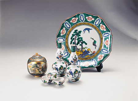 九谷燒瓷器也以“Japan Kutani”為名的彩色瓷器被世界所知曉,紅、黃、綠、紫色、深藍燒制的九谷五彩和使用鑲金箔紙為花紋的制法,成了九谷燒瓷器的顯著特征。>>>