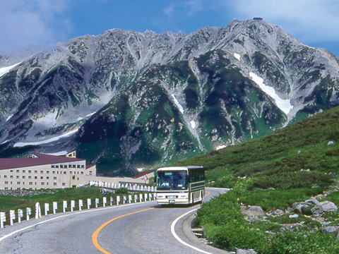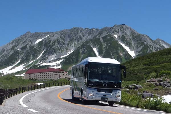 日本景點旅游線路、立山黑部阿爾卑斯路線需要換成9種交通工具才能完成長達90公里的高原旅游路線。