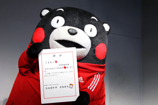 日本人氣吉祥物“萌熊”近日由于減肥失敗,由原來的熊本縣營業部長降級為了“部長助理”。