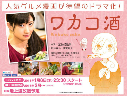 《和歌子酒》講述的是獨自一人在東京的上班族村崎和歌子天生喜歡喝酒,常常在各種各樣的地方一個人喝酒,被稱為是女版《孤獨的美食家》。今年1月這部漫畫也被拍為電視劇,由武田梨奈主演。電視劇將單身女子和歌子一個人到處愉快喝酒的美食漫畫中的情景真實化,“美味的下酒菜”和“最搭配的美酒”完美融合,主人公和歌子也總是在暢飲過后壓力全消,發出一聲“噗咻”。值得一提的是,這部作品中和歌子會嘗試各種酒,大多適合女性飲用。喜愛喝酒的女生也不妨以此為參考,小酌一杯。