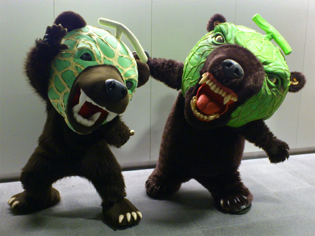 蜜瓜熊也曾作為使者拜訪當地幼兒園,不過卻把小朋友們嚇得哇哇大哭。后來,當地索性推出了蜜瓜熊“兇殘版”,形象更加可怕。