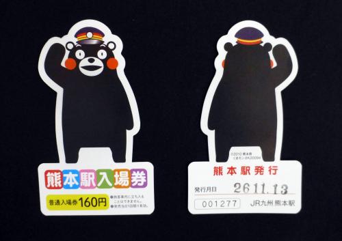 為紀念豐肥線的熊本―肥后大津(熊本縣大津町)區段迎來開通100周年,九州鐵路公司熊本分公司在熊本站推出了該縣萌熊吉祥物kumamon形狀的紀念站臺票。