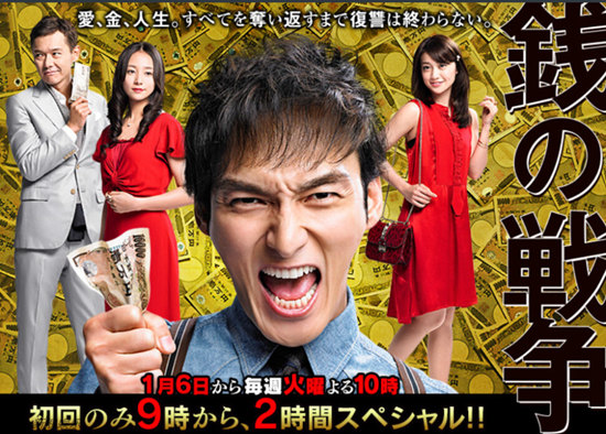 平均收視率13.4%的《錢的戰爭》排名第三。公認的演技派SMAP草剪剛此次出演被金錢打亂人生后丑態盡出的男主角,引發關注。許多粉絲對他的演技稱贊道:“男主角從谷底向上爬,落寞、憤怒之中又充滿了溫柔。草剪剛表情豐富,被他的演技所吸引!薄斑@部作品正值草剪剛的轉型期!贝送,也有許多觀眾對電視劇本身發表了意見:“劇情發展很快,很有趣,我一直盯著電視看!薄皠≈杏泻脦状伪撑,看的時候很緊張!