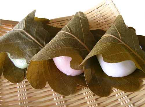 因為與端午同日,所以在這一天還會吃驅邪的糕團“柏餅”。據說柏餅所用的槲櫟葉在新芽生出前,老葉不會掉落,有“子孫繁栄榮”之意。柏餅是和果子的一種,流行于日本關東地區,外型像中國的茶果,呈圓形或半圓形,以洗凈的梗米干燥后磨成的上新粉(中間粗度的粉)制成,包入甜餡料,做好后加上日語稱為“柏”的槲櫟(學名:Quercus dentata)葉或菝葜葉對折包在外面即成。餡的種類有紅豆粒餡、豆沙、味噌餡等。 >>>>