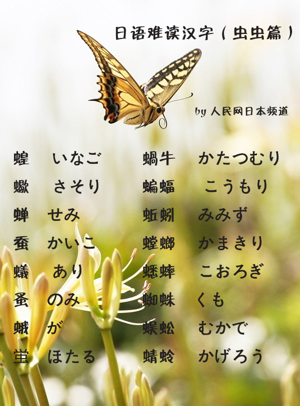 日語中的“難讀漢字”(昆蟲類)