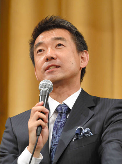 得知投票結果后召開記者見面會的橋下徹(圖片來源:朝日新聞網站)