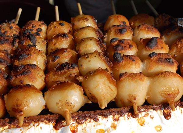 飛彈團子(飛騨のみたらしだんご)味道清淡,清淡的醬油味。