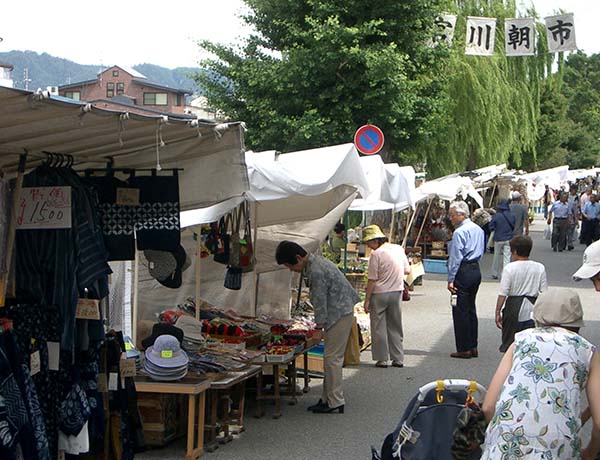 早市一處在陣屋前廣場、一處在宮川河沿岸。