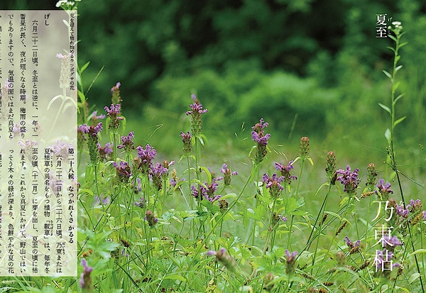 6月22日-26日!澳藮|”(夏枯草)是中草藥的一種,開紫色小花,在日本的田間地頭非常常見。這種草冬至發芽,生長到夏至的時候,花蕊呈灰黑色,看起來像是枯萎了一樣。在百花盛開的夏季,夏枯草算是一處獨特的風景吧。