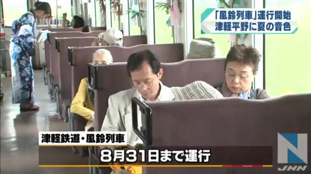 人民網東京7月3日電 據日本媒體報道,連結日本青森縣五所川原市和中泊町的津輕鐵路1日開始運行“風鈴列車”,乘客在乘車同時可以欣賞到清脆的風鈴聲。