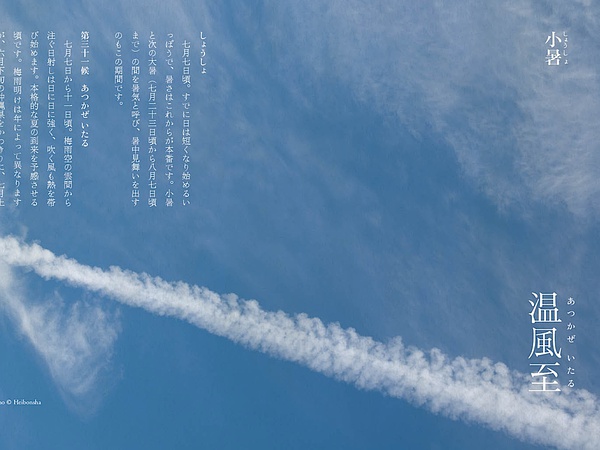 7月7日-11日。梅雨天氣接近尾聲,雨初晴,密樹翠陰成。天空中不時吹起溫暖的風,稱為“溫風至”。