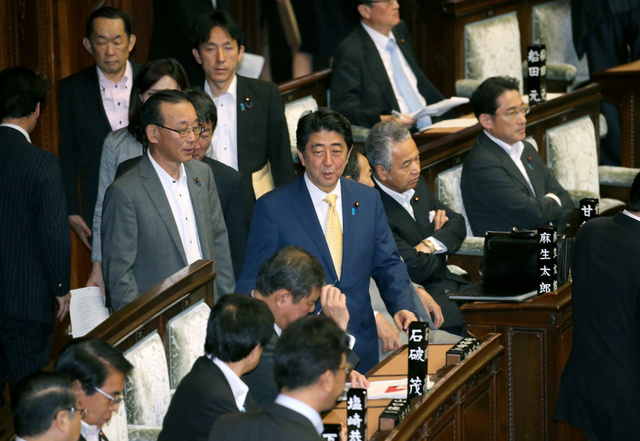 16日,日本首相安倍晉三在眾議院全體會議上(圖片來源:朝日新聞網站)