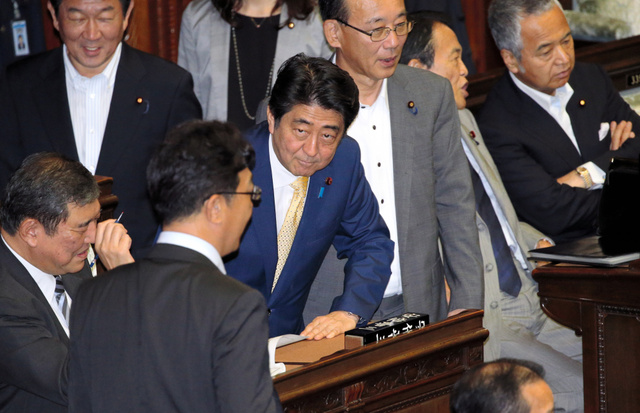 16日,日本首相安倍晉三在眾議院全體會議上(圖片來源:朝日新聞網站)