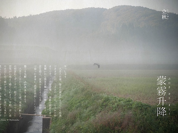 8月18日-22日!懊伸F”是濃霧的意思。清晨被濃霧包圍的狀態,日語里叫做“霧の帳(とばり)”、“霧の幕”。霧氣蒸騰的樣子猶如青煙裊裊,因此有“霧の香(か)”的形容。