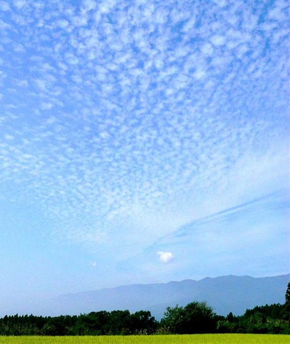 對日本人來說,立秋是一個季節轉折的時期,炎熱的夏季即將過去,秋天就要來臨。而最能體現這一階段特征的或許要數變化多端的云彩了。清晨或者傍晚抬頭仰望天空,或許從中可以感受到一絲秋天的味道。比起一個月前,這時候的天空似乎高了很多,也寬廣了很多,而且,常常會出現一塊一塊猶如白色鵝卵石般的卷積云。