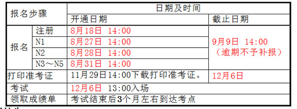 據悉,網上報名分兩個階段進行。第一階段僅進行個人信息注冊和上傳電子照片;第二階段除考生可繼續注冊外,按N1、N2、N3~N5的順序依次分別開放考試名額供已完成個人信息注冊與上傳電子照片的考生選擇級別和考點,此階段考生需要完成預定考位和支付考費等全部報名手續。