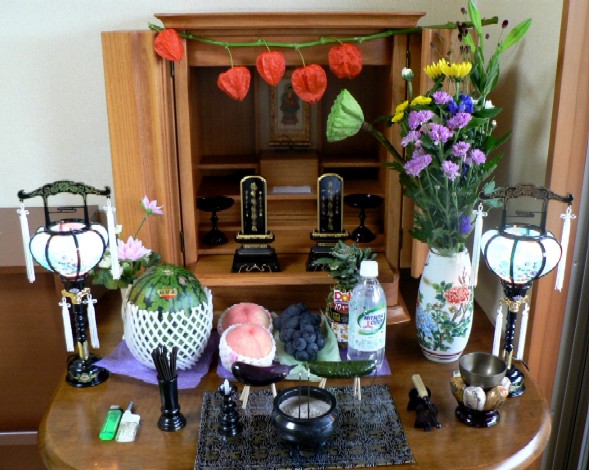 盂蘭盆節時供奉亡靈的鮮花。如桔梗、荻、酸漿果、黃花龍芽等的花朵。要盡量避免擺放有刺、有毒或是香味濃郁的花。