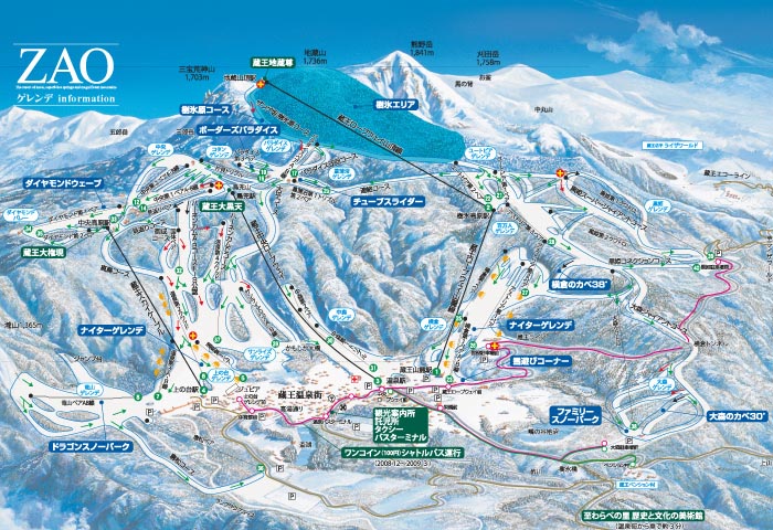 山形藏王溫泉滑雪場代表性的高級雪道有: