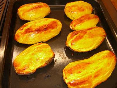 日本街頭也有許多推車賣烤紅薯的攤販。和中國不同的是,日本大多是石烤紅薯。日本烤紅薯的叫賣聲也很有特點,根據地域不同有所區別。此外,日本人還以紅薯作原料,加入雞蛋和砂糖、黃油等,盛放在紅薯皮里,再刷上一層蛋黃烤制成一種紅薯點心,稱作「スイートポテト」(sweet potato)。