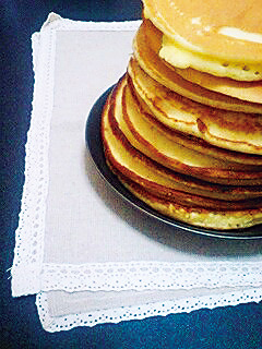 ホットケーキは休日にまとめて15枚くらい焼いておき、ラップに包んで冷凍しておきます。朝起きてシャワーを浴びる前に電子レンジに入れれば、上がるまでに解凍されて食べ頃に。時間がなくてもすぐにおいしく食べられるので便利です!