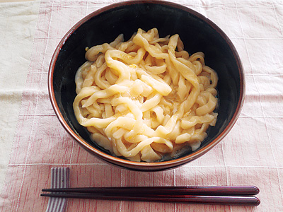 朝からうどんは當たり前。私も朝一番の取引先の近くにあるうどん屋さんで、一仕事終えた後の朝食を取ります。寫真は「かまたま(釜揚げたまご)うどん」、セルフサービスで200円から!