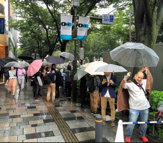25日早晨在表參道蘋果實體店門口冒雨排隊的人們