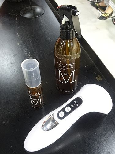 這個美容液會抹在頭發上。因為在家用它效果也很好,買了帶回家的顧客也很多。這款美容液在我們沙龍執行預約銷售的模式。在關西機場的免稅店也能買到,但通常斷貨買不到,而在我們沙龍則時常保持充足的庫存。