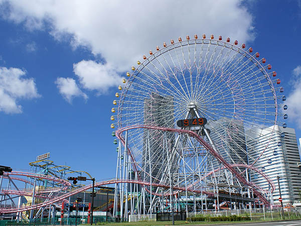 橫濱Cosmo World是一個開放型的大型游樂場,有刺激好玩的過山車、海盜船,更有高達112.5米的地標建物“太空大鐘21”(コスモクロック21)摩天輪。