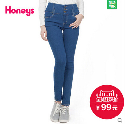 三扣高腰牛仔褲頻頻出現在各大雜志上,可謂是今年大熱的一款單品。Honeys這款高腰牛仔褲使用超強伸縮性牛仔褲,便于活動,凸顯腿部線條。同時三?鄹哐O計,拉伸整體比例,后腰的弧度設計也可修飾臀型。
