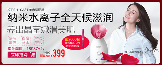 松下電器明星產品,美容神器。納米水蒸汽呈納米單位大小,相對于普通蒸汽,更容易深入肌膚,肌膚補水效果更佳。納米水蒸汽蒸面器可幫助深層清潔肌膚,在溫熱蒸汽的作用下,肌膚深處的污垢容易清除。