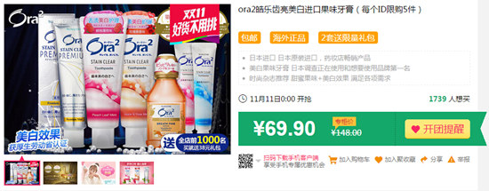 此款套裝內含有皓樂齒亮白凈色鮮桃牙膏、玫瑰牙膏各一支,亮白凈色精致薄荷牙膏一支,天然/鮮桃小牙膏兩支,另外附贈芒果漱口水一瓶。