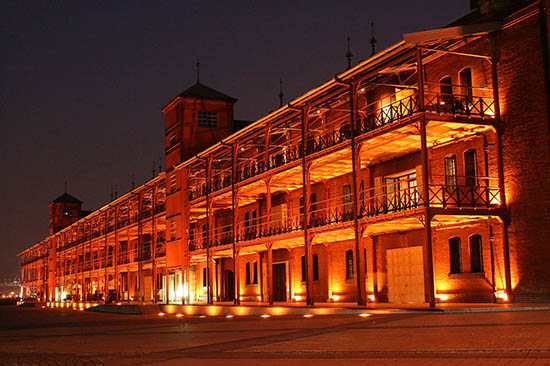 傍晚開始,華燈初上,將磚瓦顏色映襯得格外漂亮,這里不僅是欣賞燈光的去處,從倉庫前的涼臺也能眺望港未來地區的璀璨夜景。
