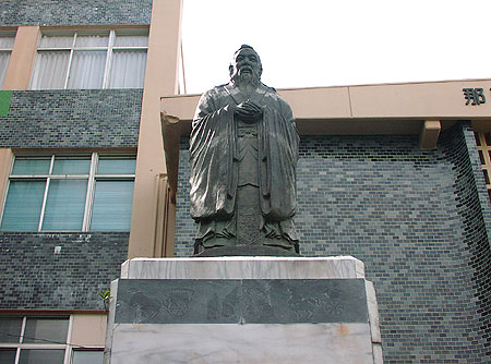(左圖:放置在那霸市孔廟舊址的孔子像)