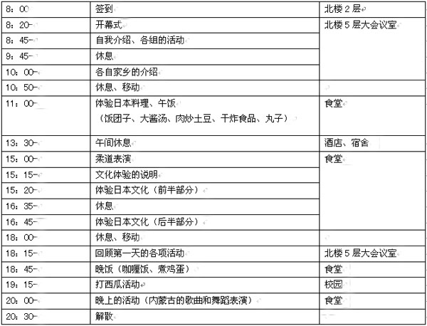 *文化體驗的內容:茶道、夏季浴衣、角色扮演、折紙、福笑、劍玉、紙牌游戲、柔道