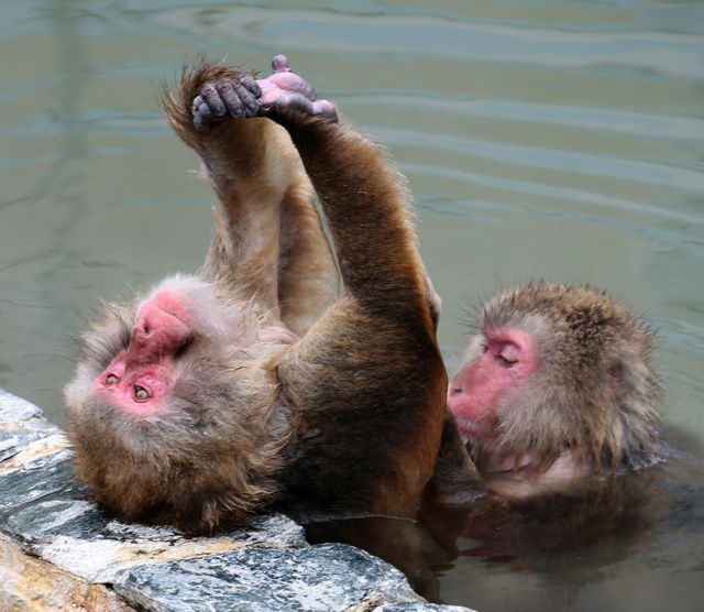 植物園里正在泡溫泉的猴子(圖片來源:朝日新聞網站)