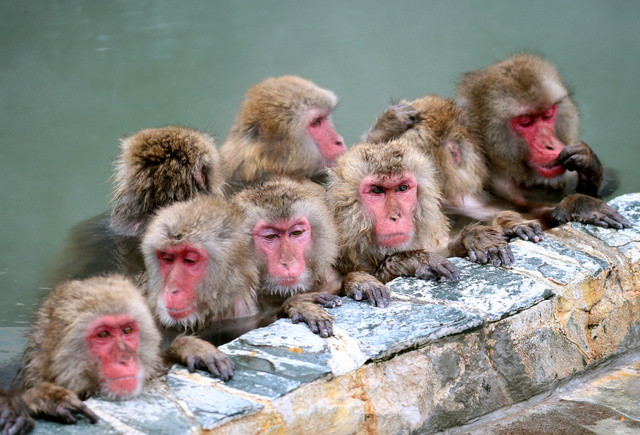 植物園里正在泡溫泉的猴子(圖片來源:朝日新聞網站)