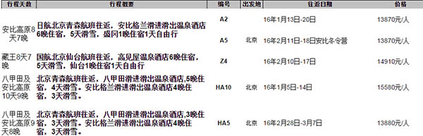 安比高原滑雪場&藏王溫泉滑雪場2016雪季線路與報名熱線:400-6458-400