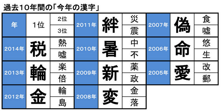 過去十年的年度漢字
