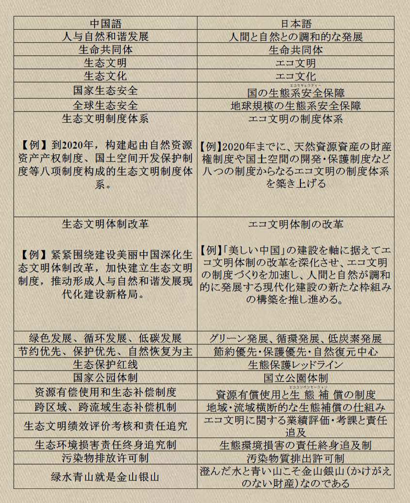 中央編譯局近日公布了中央文獻重要術語譯文第八期內容。黨的十八大明確提出把生態文明建設放在突出地位,融入經濟建設、政治建設、文化建設、社會建設各方面和全過程,努力建設美麗中國,實現中華民族永續發展。剛剛結束的黨的十八屆五中全會提出要堅持綠色發展,推動形成綠色發展方式和生活方式。本期術語發布圍繞生態文明建設主題,選取了18條術語,涉及生態文明建設的目標、理念、基本方針、實現路徑、體制機制、政策措施等。這些術語主要選自《生態文明體制改革總體方案》、《中共中央關于制定國民經濟和社會發展第十三個五年規劃的建議》等文獻。