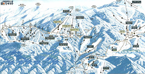 志賀高原滑雪場分三大區域:中央區、燒額山區塊、燒額·奧志賀、渋峠·橫手山·熊湯。>>>