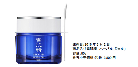 日本大型化妝品廠家高絲(KOS?)宣布從3月2日在日本本土美容市場推出草藥成分的護膚新品“雪肌精HERBAL GEL”,讓肌膚充滿透明感,是一款具有多功效的藥妝品。