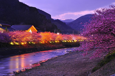 貫穿城市南北的河津川,其岸邊大約4公里的河道上擠滿了櫻花。