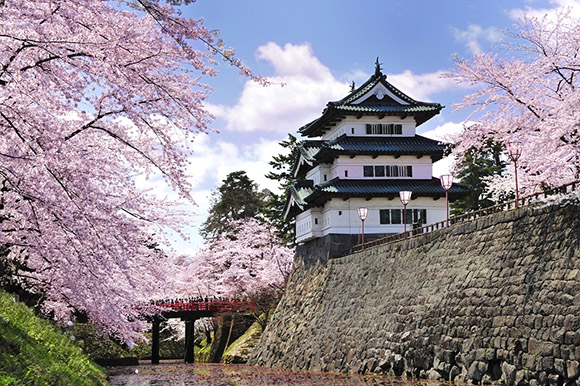 日本東北的青森、巖手、秋田三地的知名賞櫻景點:青森弘前公園、巖手北上展勝地、秋田角館。