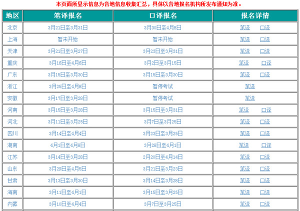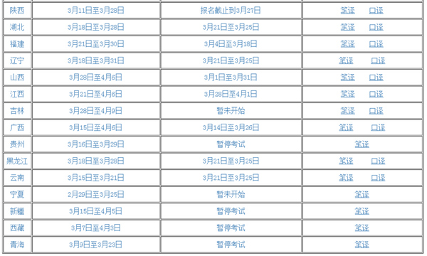 人民網北京3月24日電(陳思) 全國翻譯專業資格(水平)考試官方網站消息,各語種上半年考試報名工作已經陸續開始,預計4月初結束。各省市口、筆譯報名方式與時間略有區別,請各地區考生抓緊時間進行報名工作。