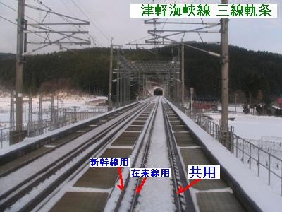 相比既有線路,新干線的線路要寬一些,在共同行駛區間,在既有線的外側多鋪了一根軌道,形成3軌的構造。