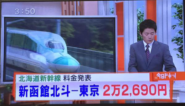 稍加與機票作比較,函館與羽田間的航班所花時間大概1小時半,機票大概在3萬8000日元。排除打折行為做單純比較的話,新干線便宜40%,但時間上飛機更有優勢。