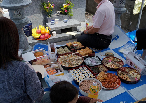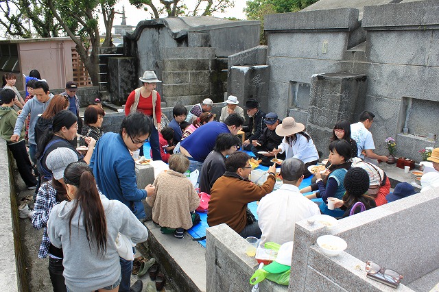 中國人會在清明這天祭祖掃墓,而日本沖繩地區也有類似的風俗習慣,叫做“清明祭”(シーミー),清明祭是沖繩的三大祭之一。這期間,沖繩人會聚集在一起,會為故去的親人上香、獻花,供奉“重箱料理”。
